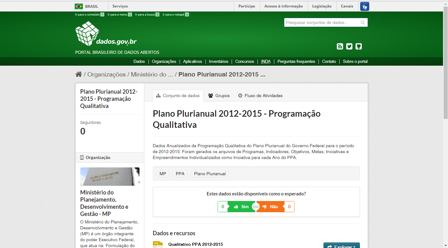 | Other Titles: | Dados abertos do PPA 2012-2015 |