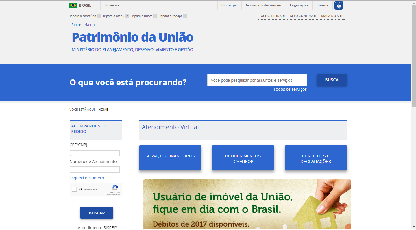https://bibliotecadigital.dth.api.gov.br/handle/777/592| Title: | Portal da Secretaria do Patrimônio da União |
